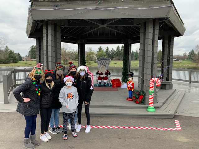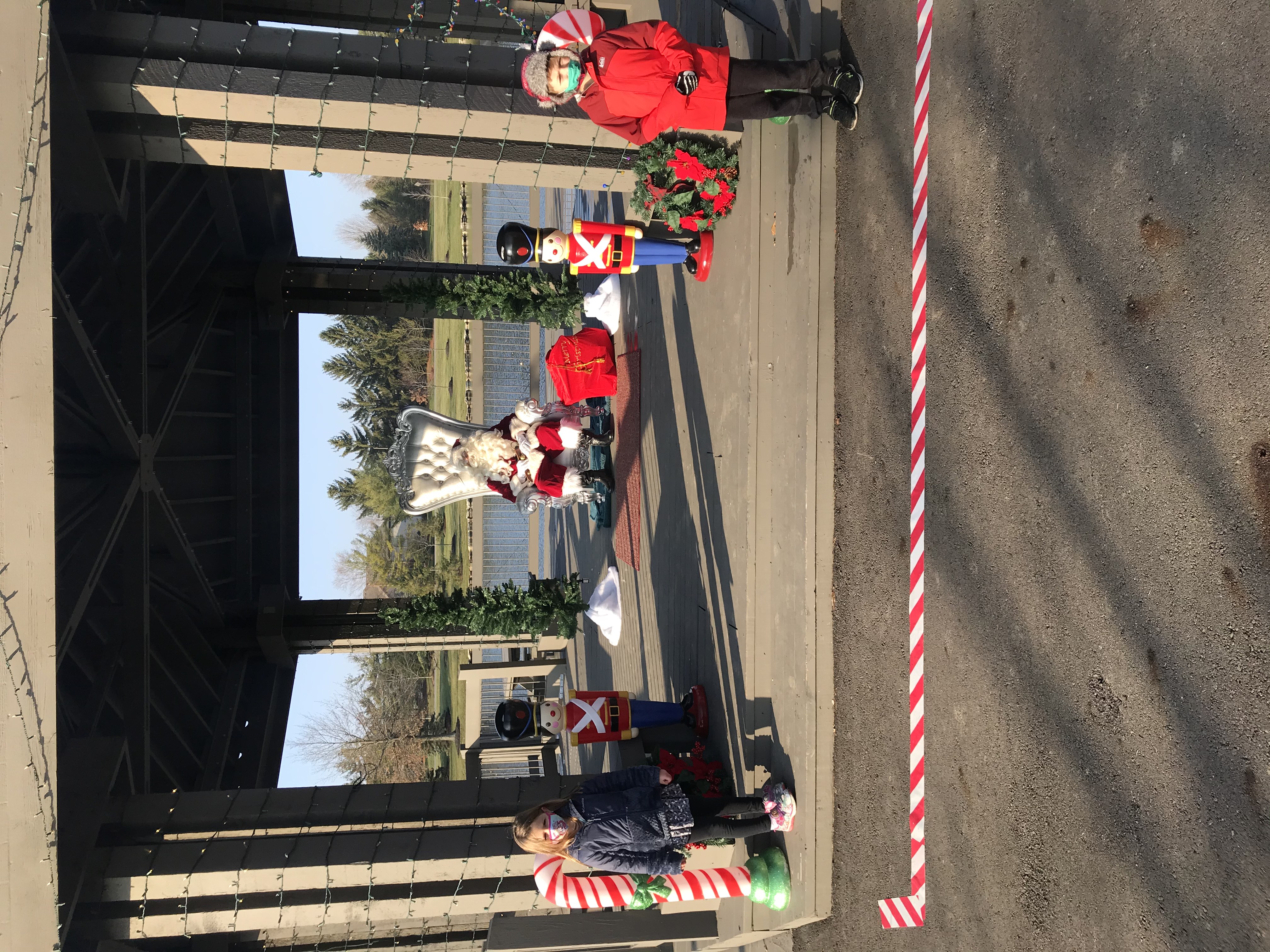 The line to see Santa was spaced out over about 1/5th of a mile of the walking path around the pool and everyone kept their group separated and distanced. The path to Santa was lined with holiday decorations and volunteers also filled the air by playing holiday music. Once visitors reached the gazebo, they saw a wonderfully decorated setting fitting of our VIP guest – Santa Claus. Visitors got to talk to Santa from a safe distance and tell him their wishes for holiday presents. And the weather was perfect, lots of sunshine to warm the bodies as the event warmed the hearts of all involved.