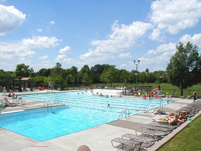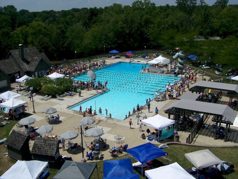 A swim meet at the Glick Road pool, featuring the Muirfins, Muirfield's youth swim team.