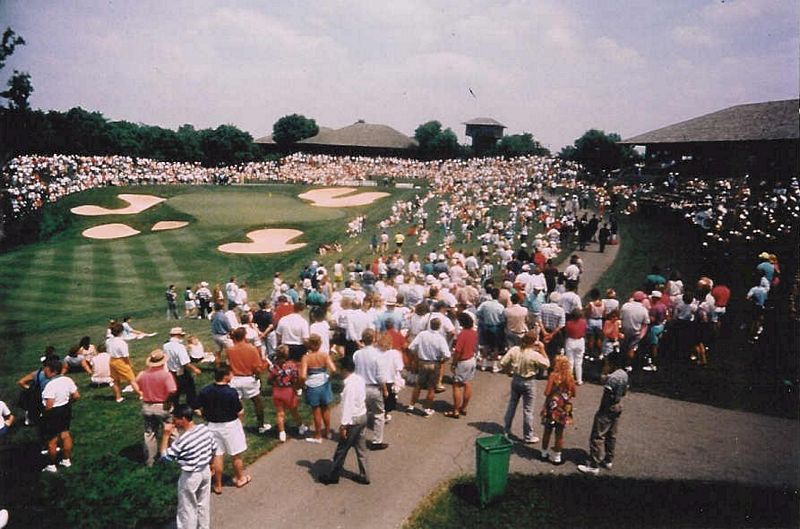 The 18th Green during the Memorial Tournament at The Muirfield Village Golf Club.