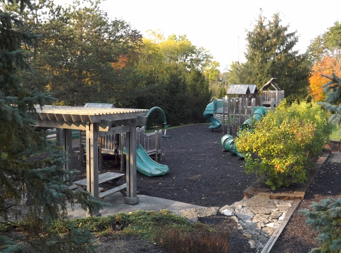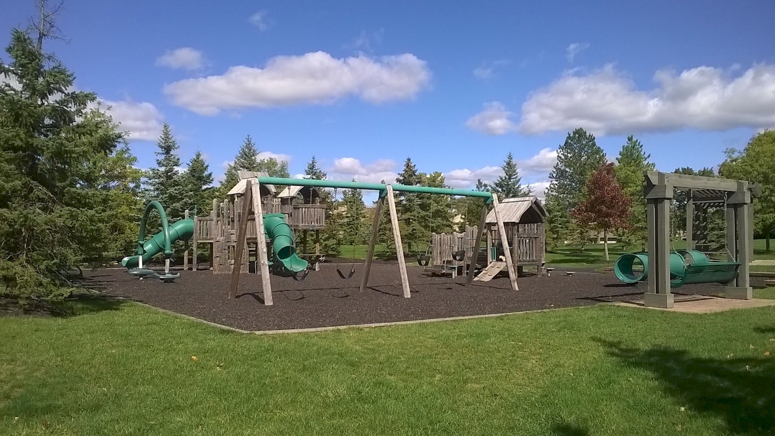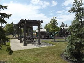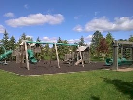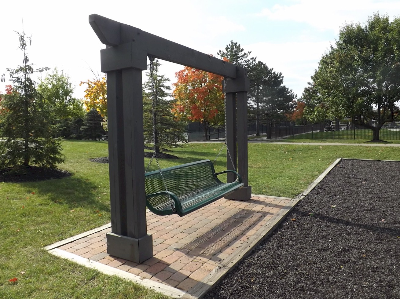Adult swings at both playgrounds allow adults to relax while the children play. Picnic tables are located at both facilities. Restrooms are available seasonally at both pool facilities.