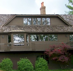 Roof material on homes abutting the Muirfield Village Golf Club, homes visible from the golf course and certain other places, are to be heavy-weight wood shakes, left to weather naturally. Roofs in other locations must be asphalt shingles, metal, slate, or tile as approved by the MDCC.